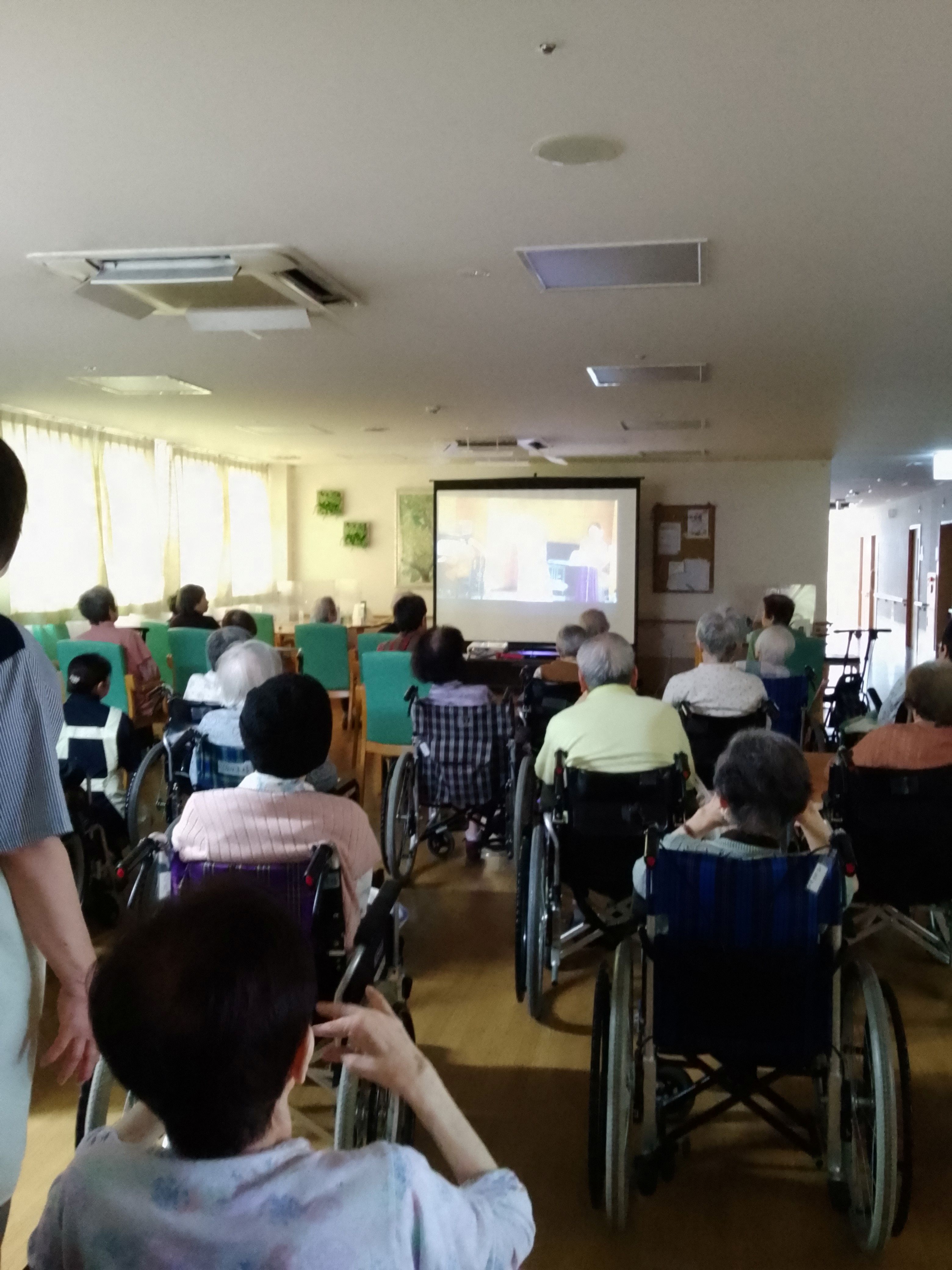 入居者様も映像に合わせて口ずさんだり、手でリズムを