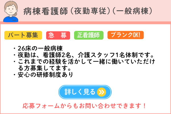 【 看護部 】の採用情報はこちらをクリックください↓